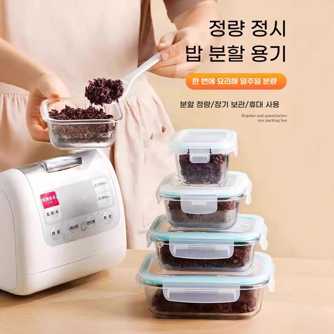 현미밥 소포장 잡곡저지방식 정량냉동 신선도시락 전자레인지 직사각형 유리도시락