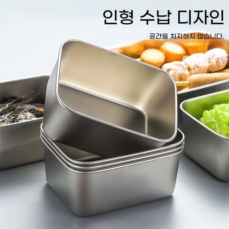 스텐레스 용기 뚜껑 달린 냉장고 수납 박스 식품 사각 케이스
