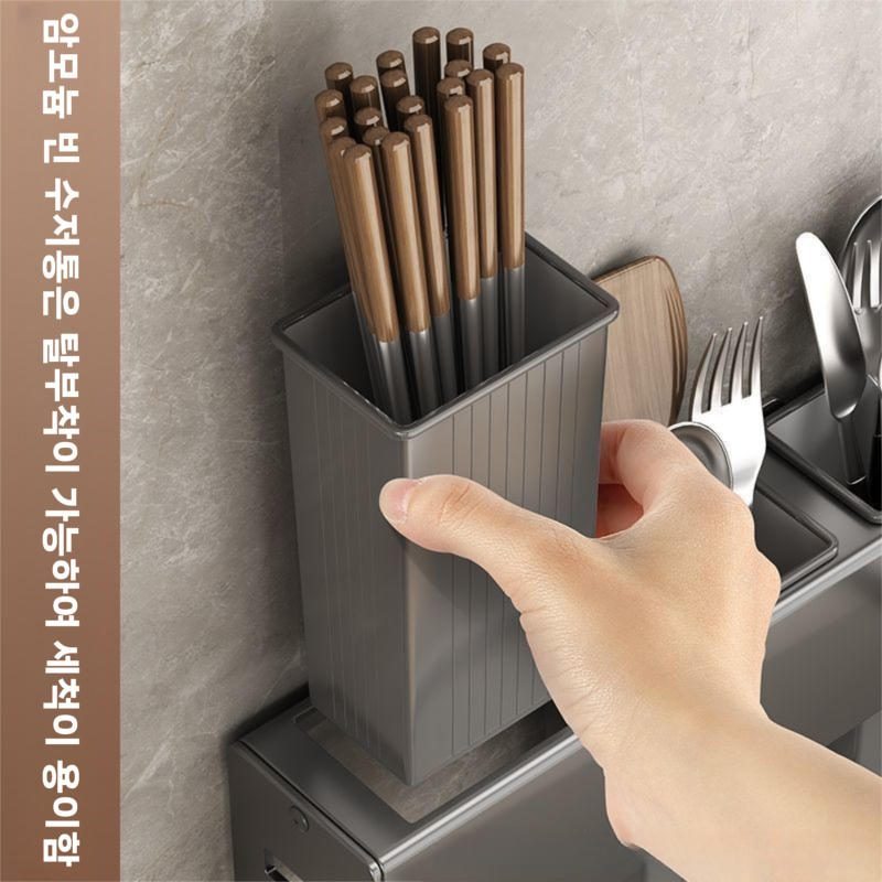 도톰한 칼꽂이 펀칭 프리 주방 선반 주방 용품 다용도 벽걸이 수저통 식칼 수납